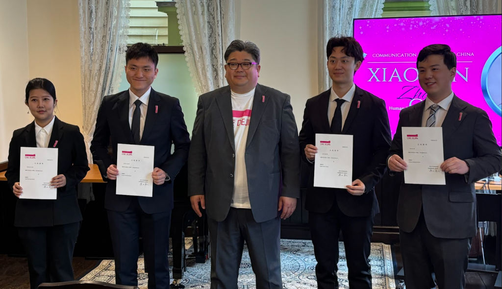 2026年度に入社した4名は、中国、韓国、日本と多様なバックグラウンドを持つ新たな仲間です。式典では、新入社員一人ひとりに社長の遠山から辞令が交付され、それぞれが社会人としての抱負と決意を述べました。